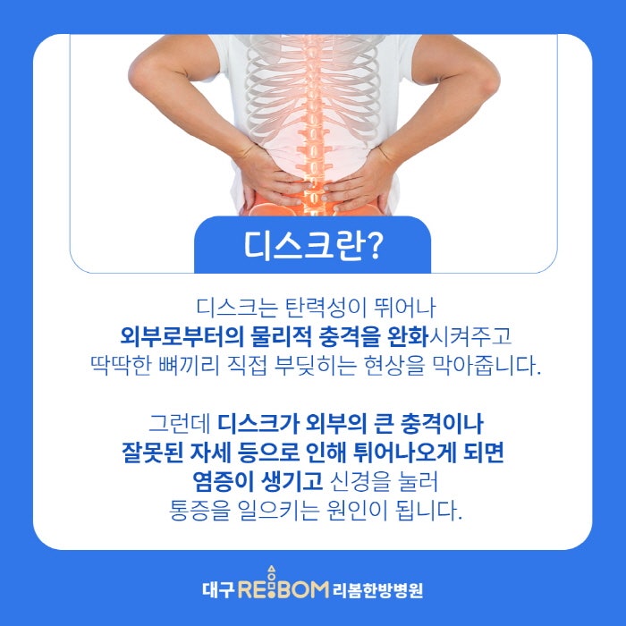 아무리 가벼운 접촉사고였다고 해도 차량간 충돌이 발생한 이상, 생각이상으로 큰 충격이 탑승자의 몸에 전달되고 이로 인해 신체 내외부에 손상이 생기면서 후유증으로 발현될 위험이 있습니다. 후유증 증상이나 정도, 발현시기는 사람마다 다 다를 수 있는데 초기에 제대로 된 대처를 하지 않고 넘어간다면 일상생활을 하는데 엄청난 불편함을 가져오고 건강악화로도 이어질 수 있어요. 따라서 교통사고가 났다면 아무리 가벼운 수준의 사고라고 해도 반드시 반월당역 교통사고 목디스크 입원이 가능한 리봄한방병원 대구점에 내원해서 양한방 진료를 받아보시길 바랍니다.