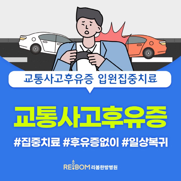 안녕하세요. 동성로 자동차사고 병원입원이 가능한 리봄한방병원 대구점입니다. 교통사고는 누구에게나 갑자기 일어날 수 있는 것 중 하나입니다. 평소 안전운전에 신경을 쓰고 평생 무사고로 운전을 해 왔다고 해도 예상치 못한 순간에 갑자기 발생할 수 있기 때문인데요. 혹시라도 교통사고를 겪게 되었다면 이후 치료를 받거나 입원을 하여 집중적인 케어를 실시하는 것이 건강하고 정상적인 일상생활로 빠르게 돌아갈 수 있는 방법이라고 말씀드립니다. 경미한 수준의 접촉사고라 하더라도 눈으로 보이지 않는 신체적인 손상이 있을 수 있으며, 당장 통증이나 불편함이 느껴지지 않아도 이에 따른 후유증이 발현될 위험이 있기 때문입니다.